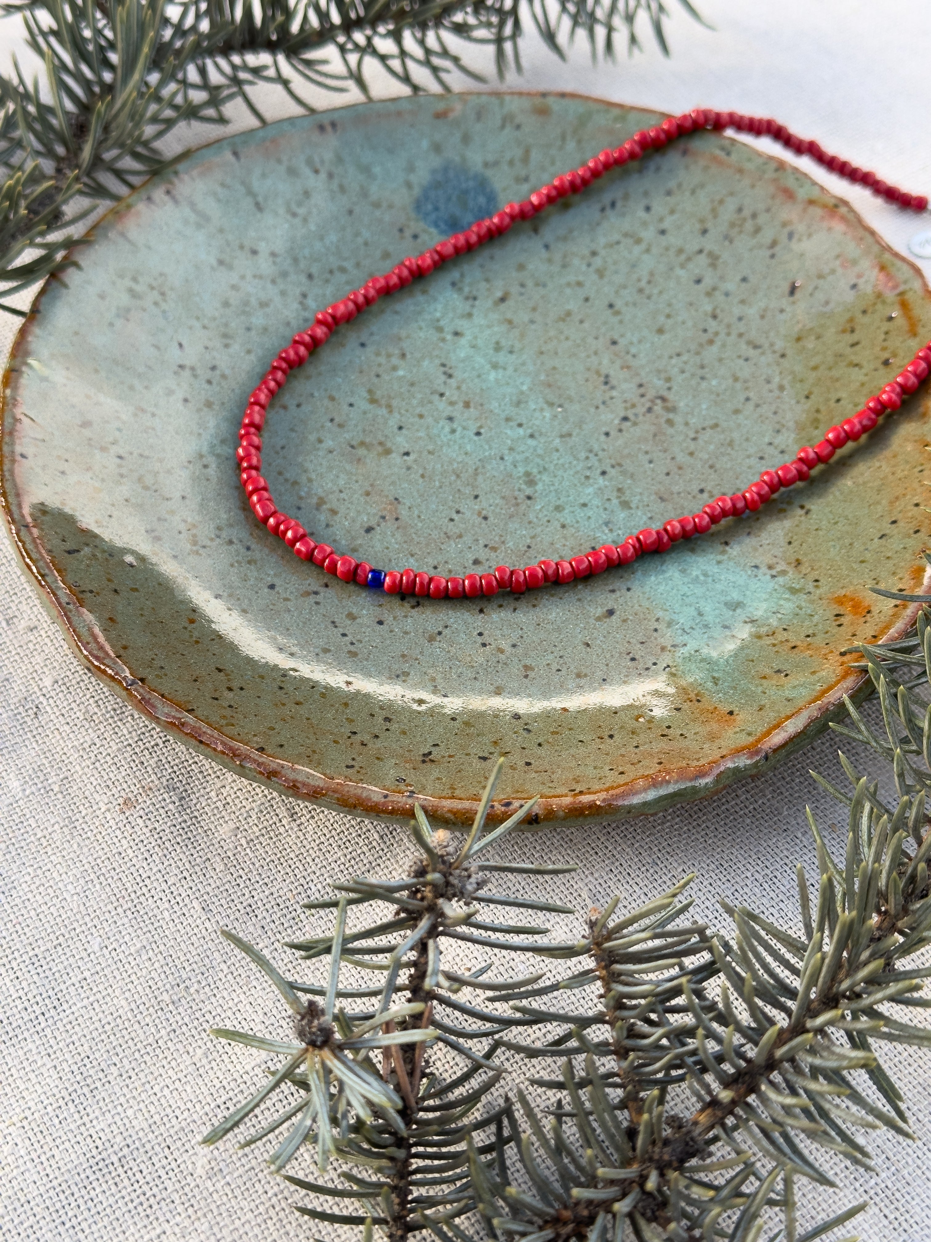 Beads: African Glass - Red with one pop of navy